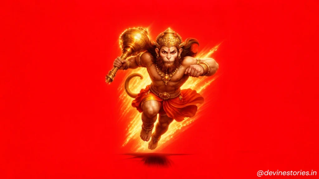 Powerful Lord Hanuman 4K Wallpaper | Bajrang Bali Flying HD Background Download this powerful Lord Hanuman 4K wallpaper featuring Bajrang Bali flying with mace. High-quality HD background for mobile and desktop, perfect for devotees. Feel the…